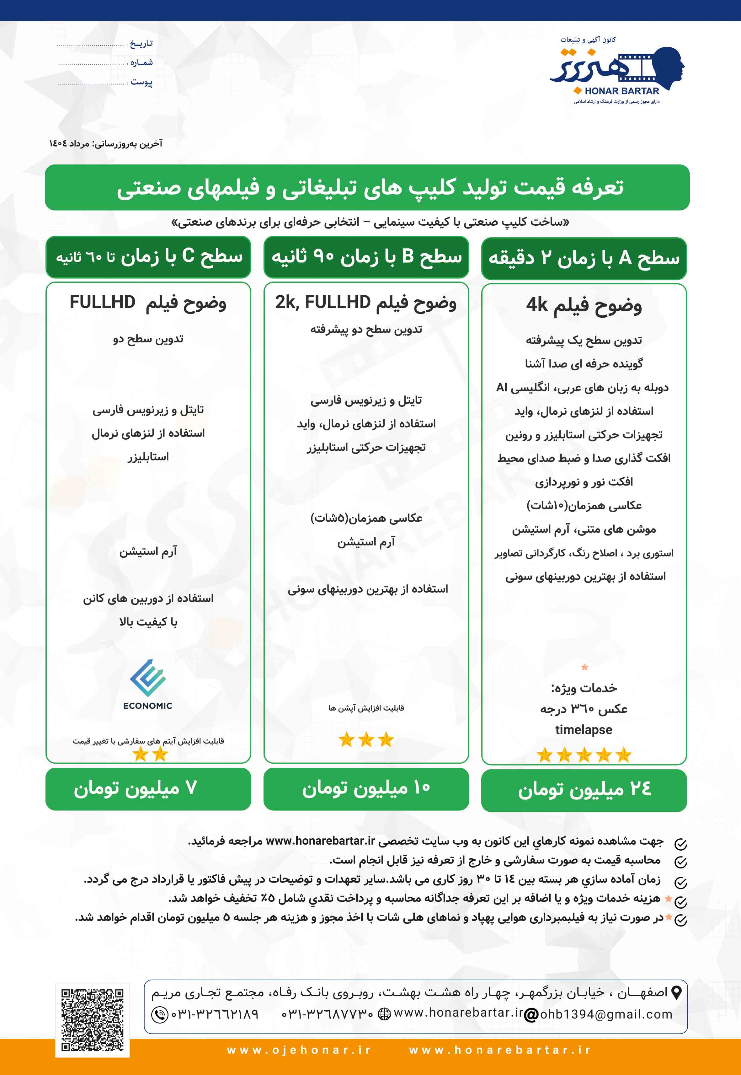 تعرفه قیمت فیملهای تبلیغاتی، فیلم صنعتیدر تعرفه قیمت ۵/۵ (۱ نظر) https://honarebartar.ir/wp-content/uploads/08.jpg 1080 1920 admin https://honarebartar.ir/wp-content/uploads/لوگو-هنر-برتر.png admin2025-07-25 10:32:322025-07-27 18:18:00تعرفه قیمت فیملهای تبلیغاتی، فیلم صنعتی